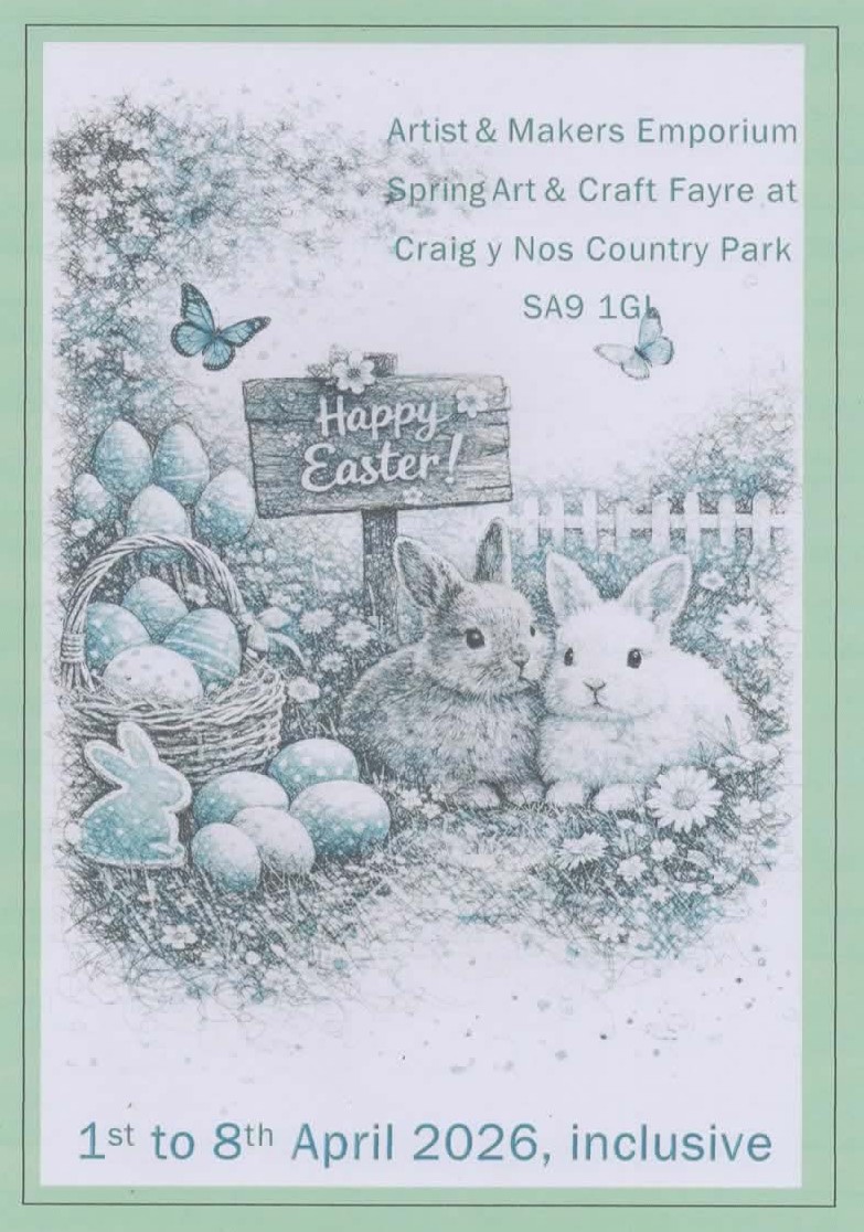 We will be holding an eight day Spring Fayre in the Hibbert Room at Craig y Nos Country Park, SA9 1GL starting on Wednesday 1st April through to Wednesday 8th April.