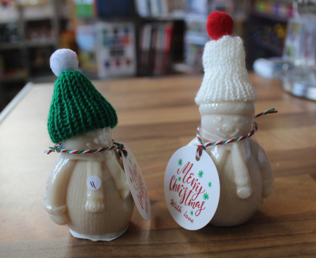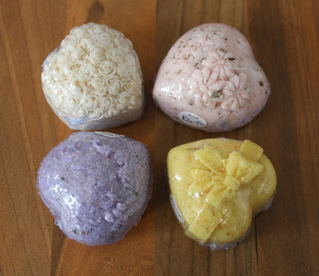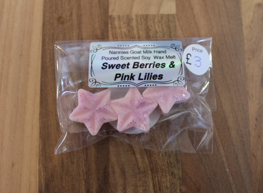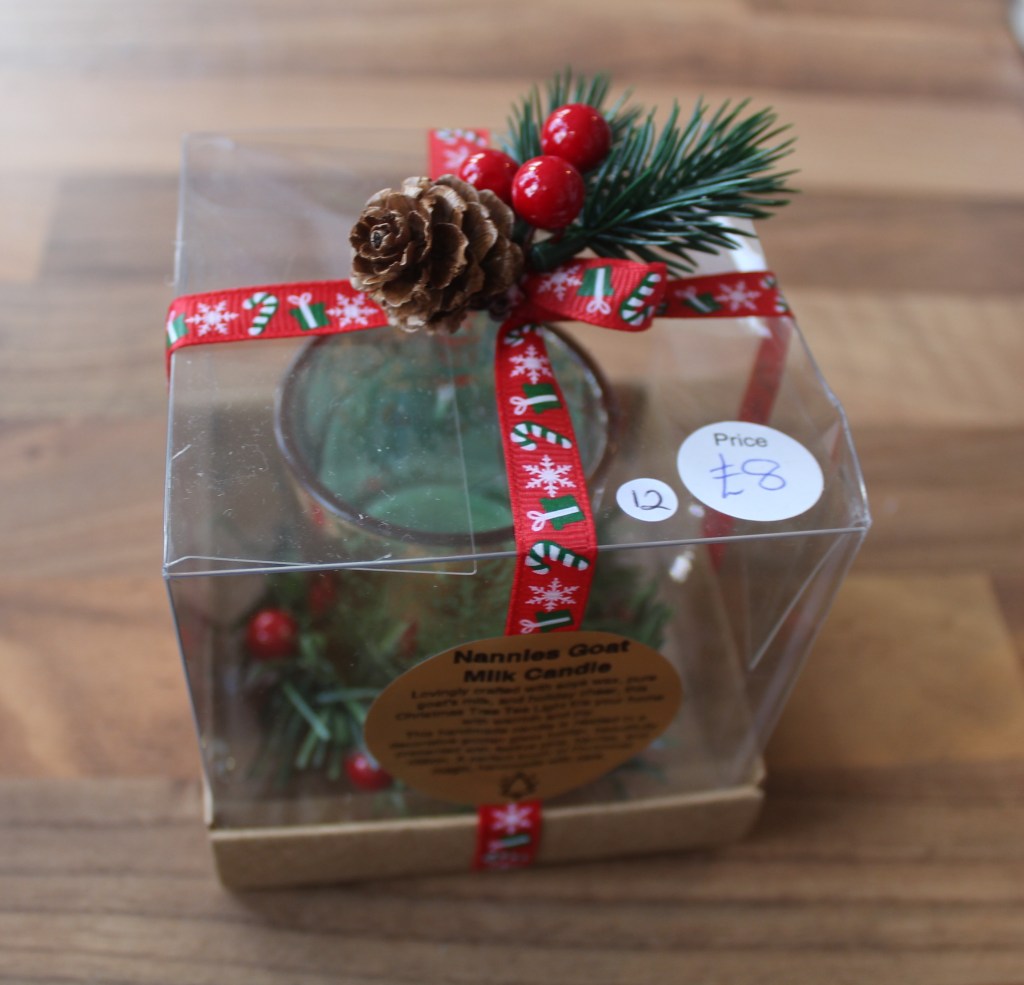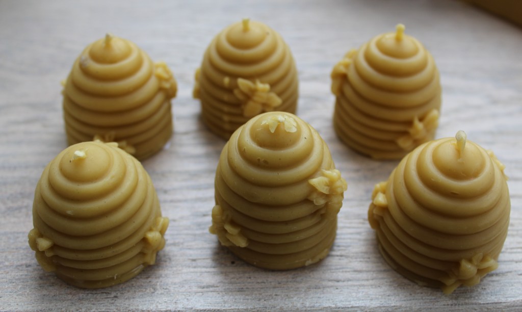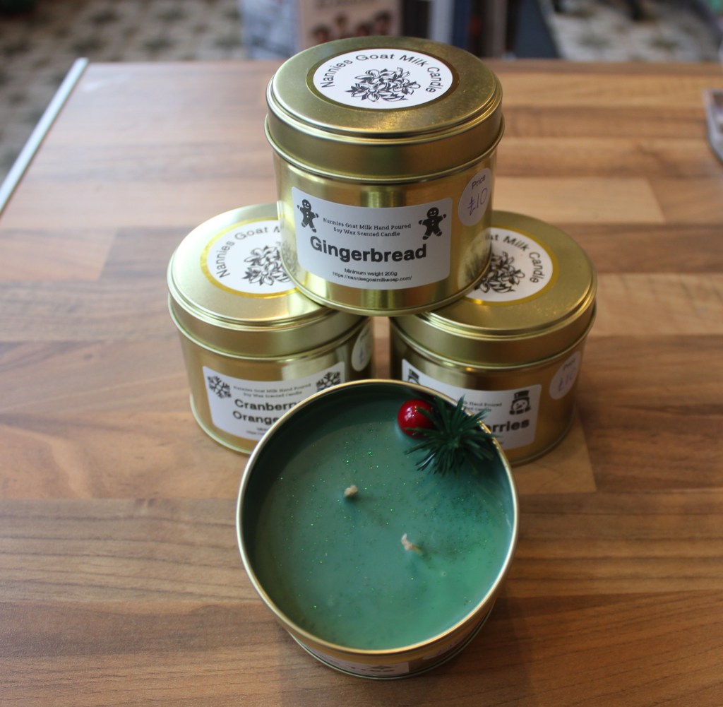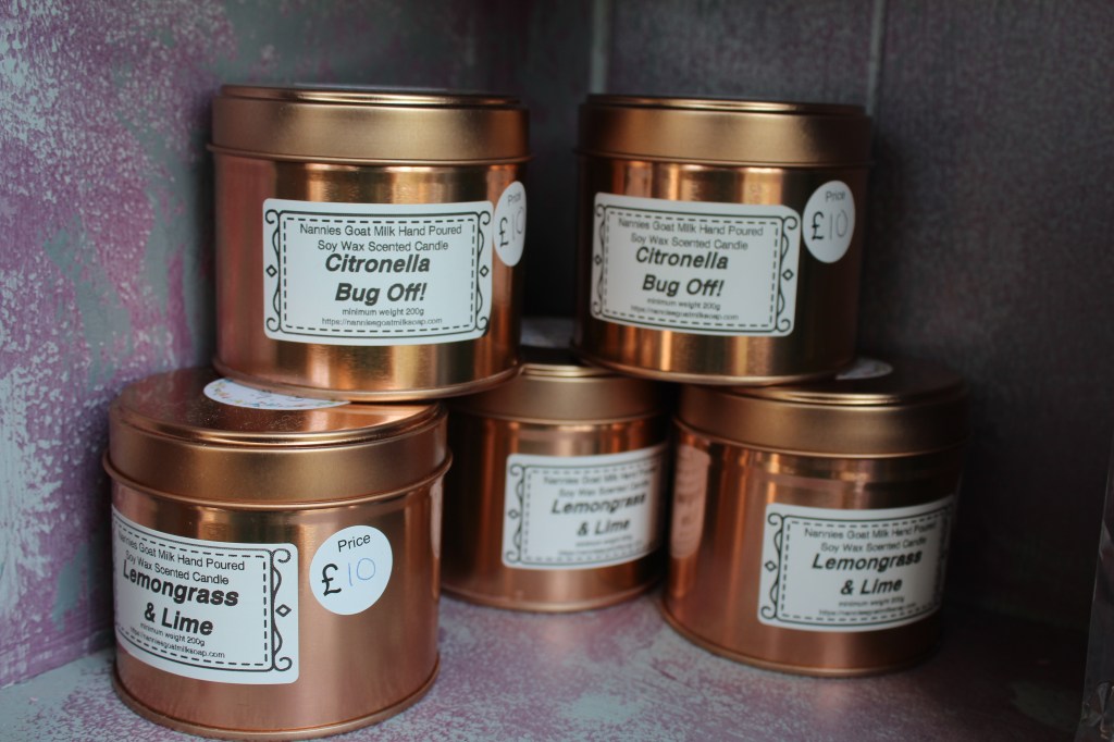 £6£10 each£5 eachBy Cali and her small herd of goats of Nannies Goat Milk Soap Skep (Beehive) beeswax candles – £3Beeswax Tealights – £1Made by Jeff Booth, local beekeeper, from his own bees