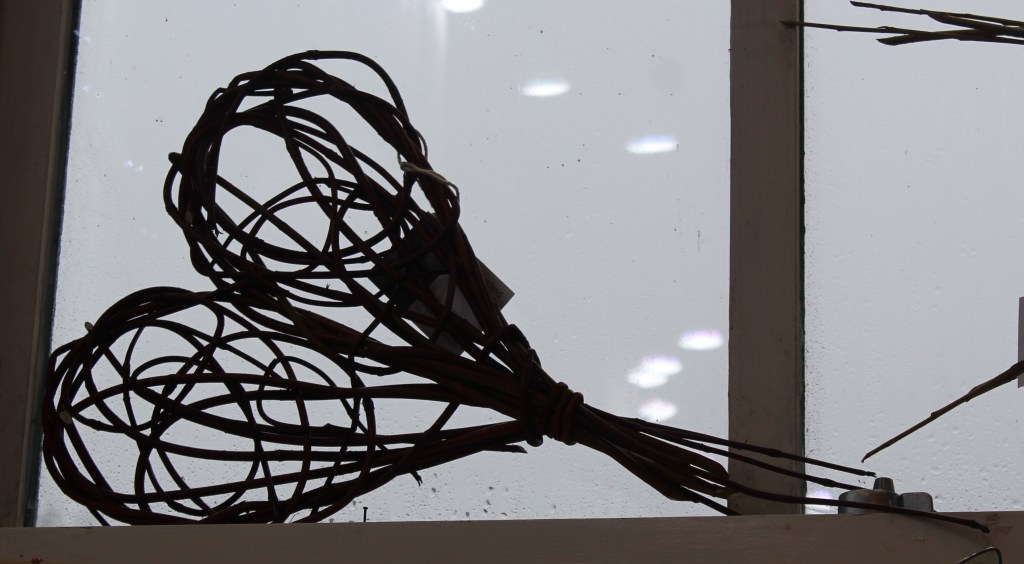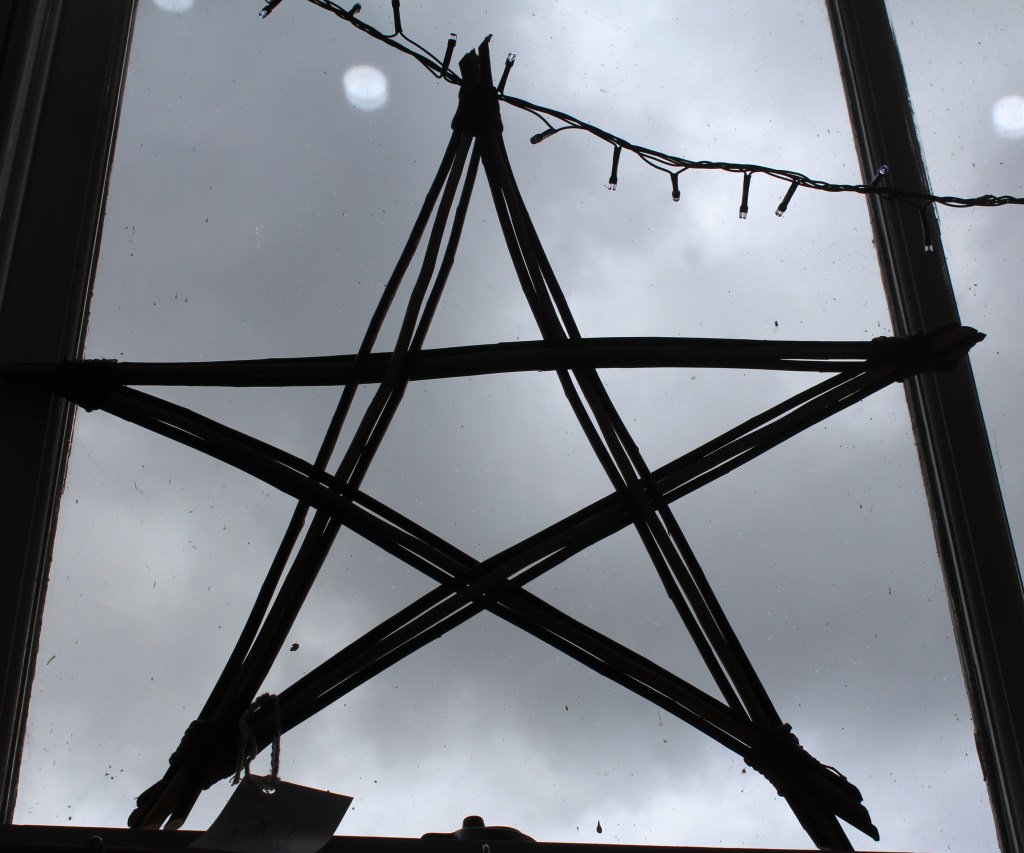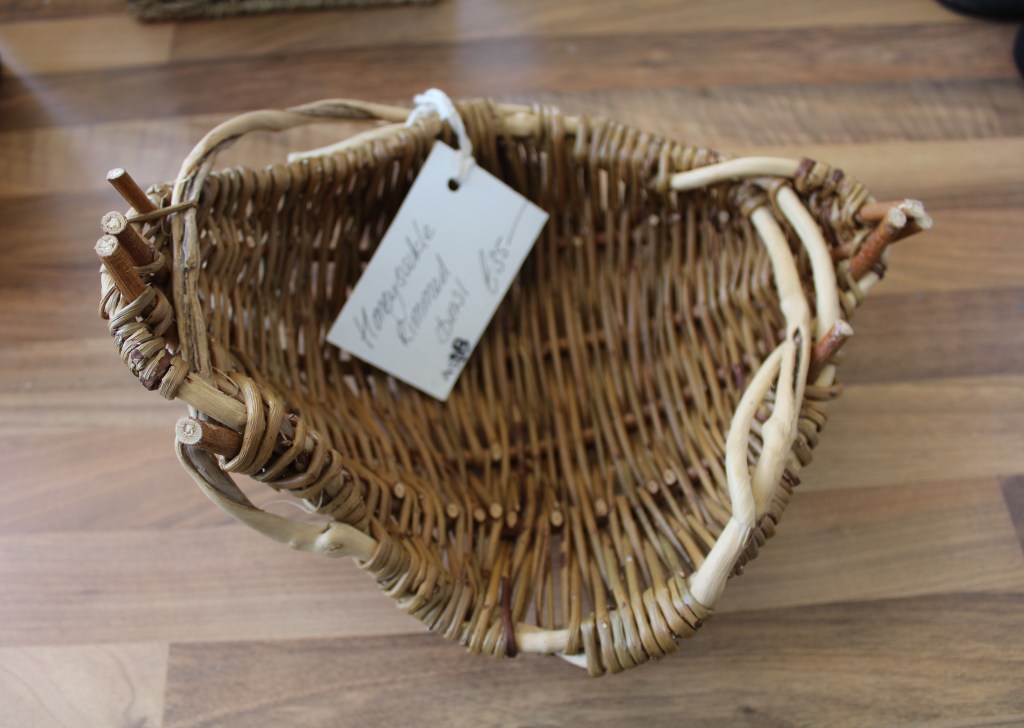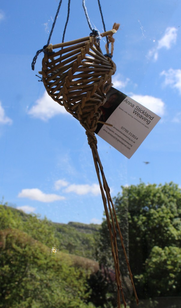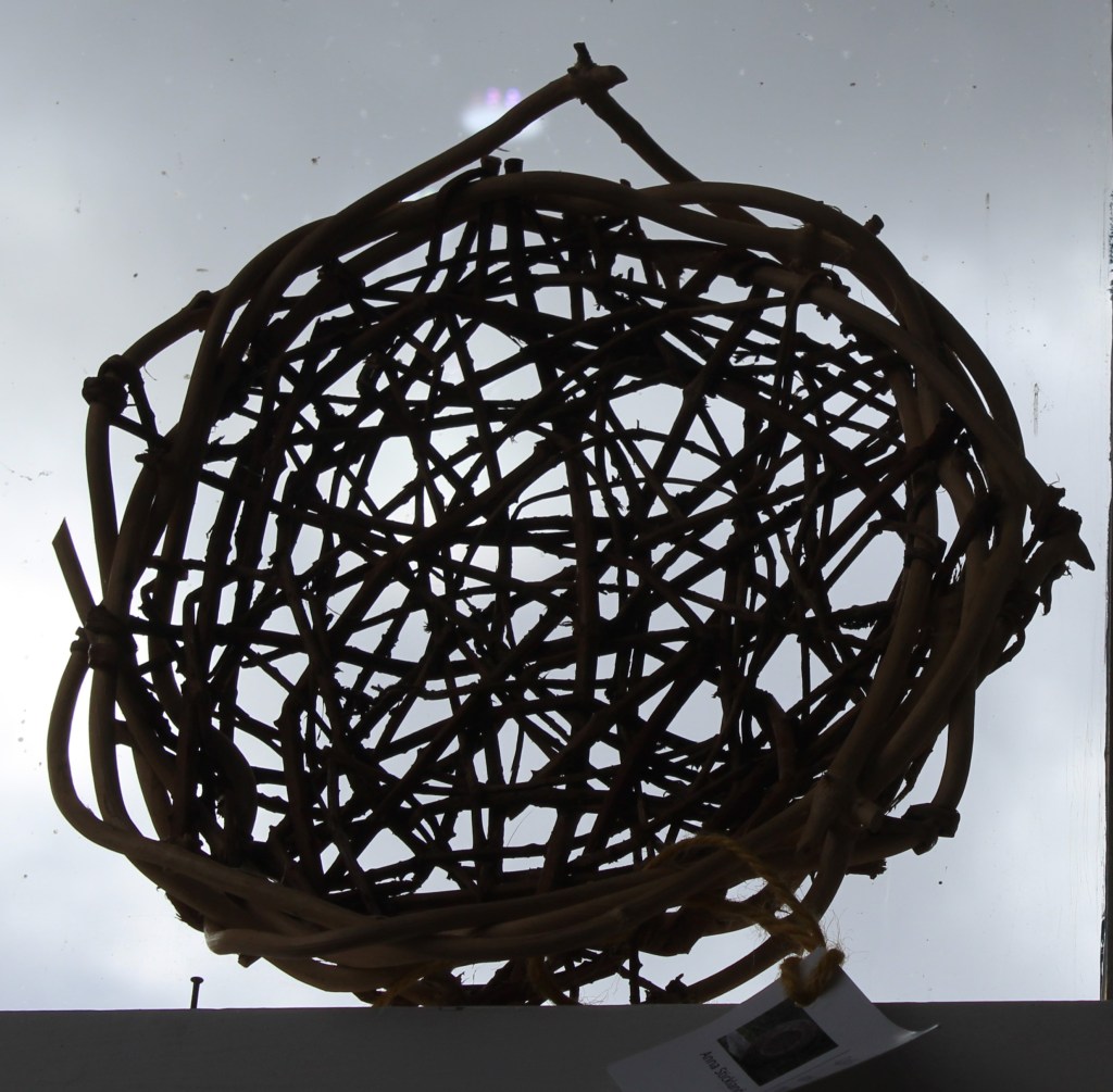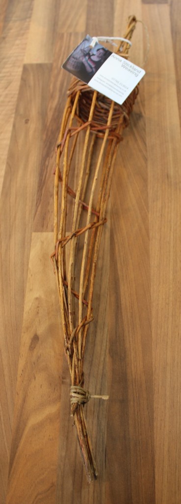 £15£20 – Random Weave Bramble Basket£22Red Dogwood Heart in Random Weave – £20Bird Feeder – £15Star Wands – £3 eachPlant Support, suitable for outdoor, indoor or conservatory use – £35Small Hanging Basket – £9Wickerwork by Anna Stickland