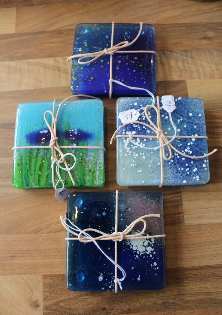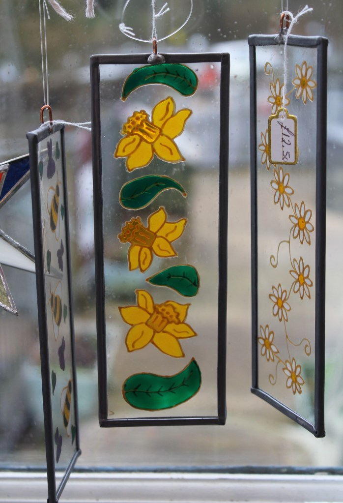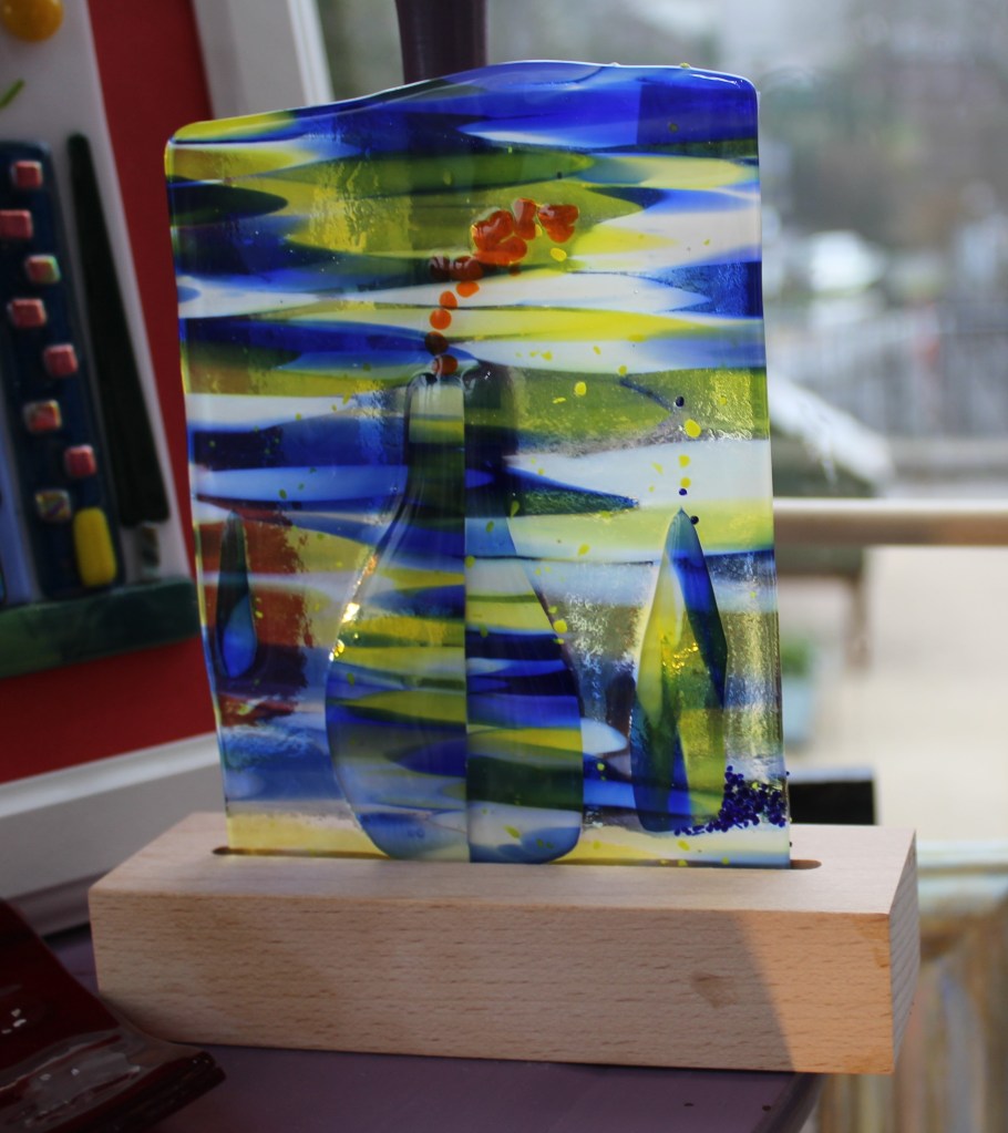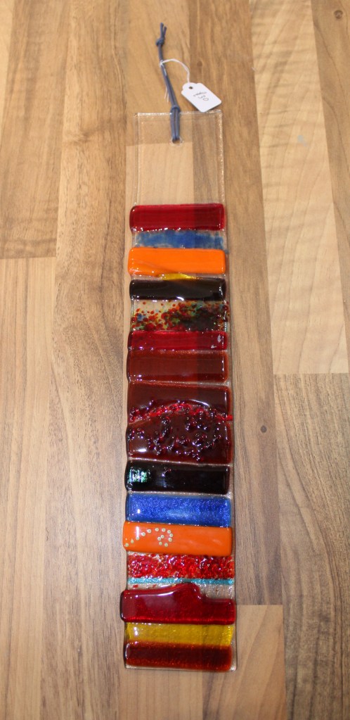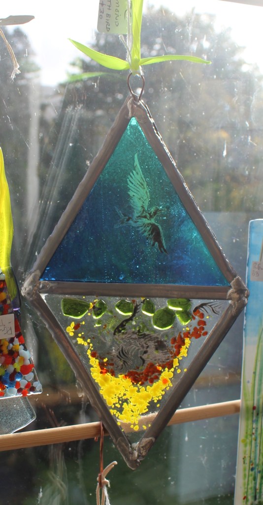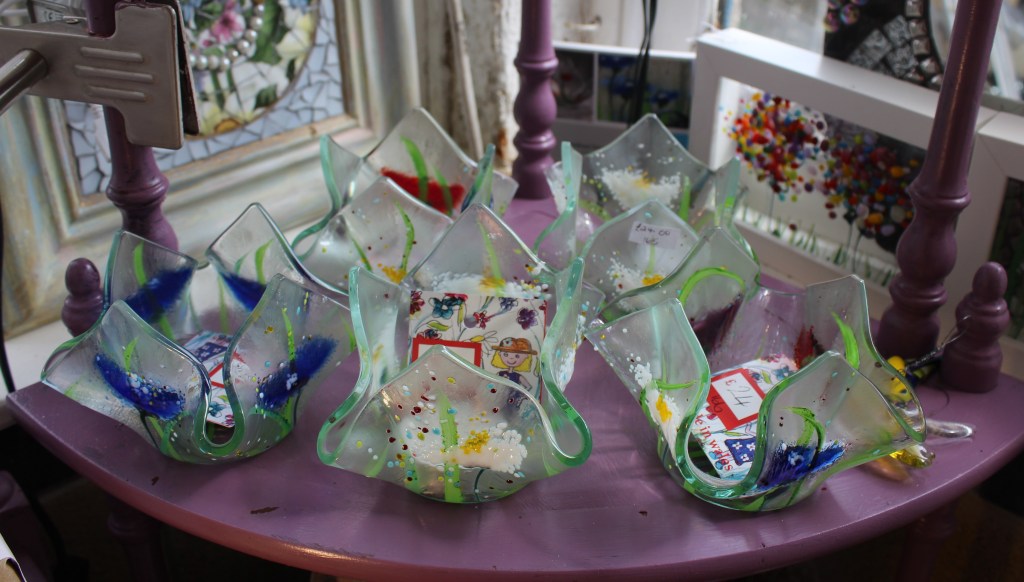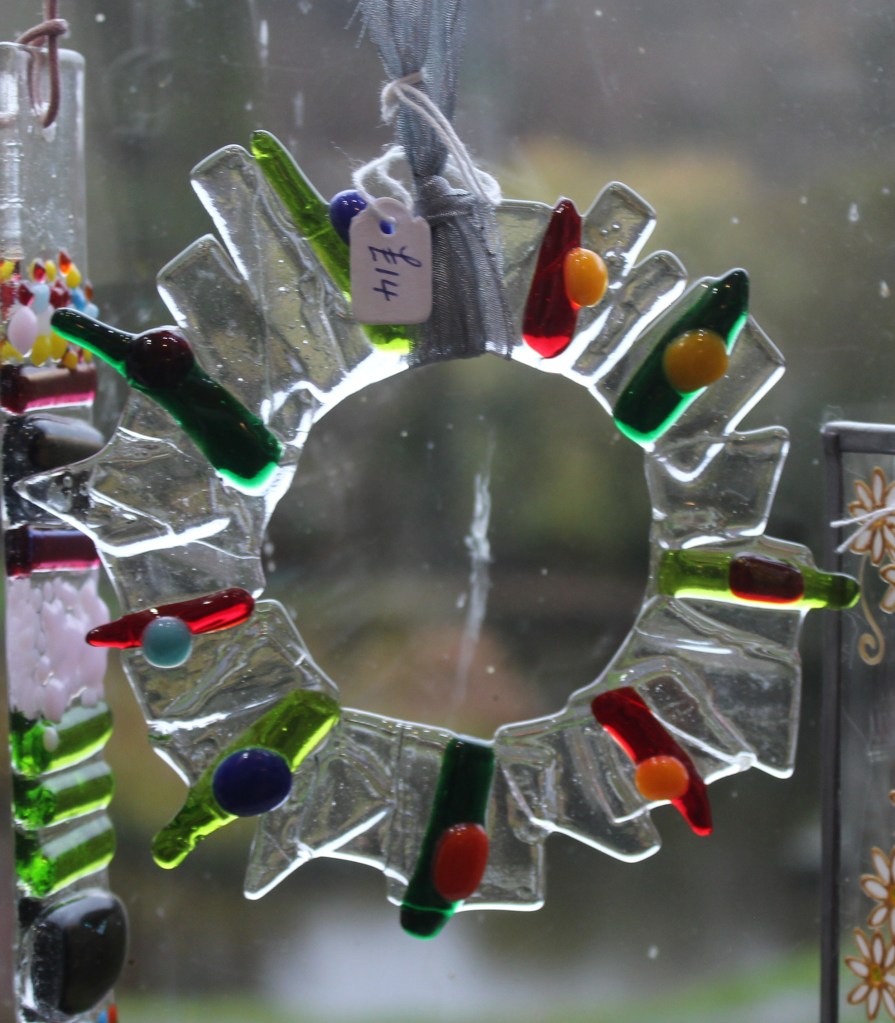 £20 + £6 for electirc lit standForest Study – £35Glass Treasures – £2 each£20Magic Forest – large fused hanging – £40Unique fused piece with Murano beads – £30.£73Traditional Glass Painting – £20£25£15£30Jane Carpenter – Jane uses traditional methods in her work, dating back as far as medieval times.Wine, Gin and Pint Glasses plus mugs in various designs – £12,50£12.50£12.50 in various designs£28 in various designs£15 in various designsVarious Designs Hand Painted Glass by Crafty Dog Cymru£35Wish Stick – £25Wish Stick – £30Wish Stick – £30Hanger in various colours – £12£12£30£23£30In various colours – £29£52Xmas Lantern – £29Tealight Holders – £24£16 per set of 2£4 each or 3 for £10Xmas Cards – £4 each or 3 for £10£14Large Wobbly Bowl – £80Rhian Goodhand Glass