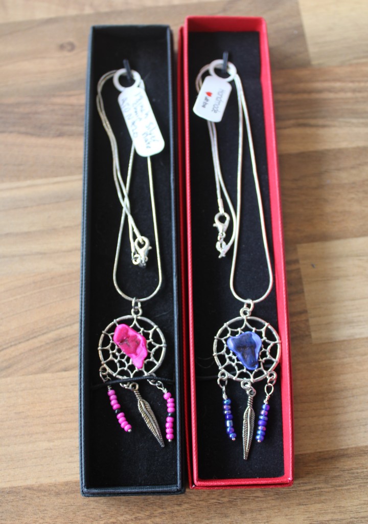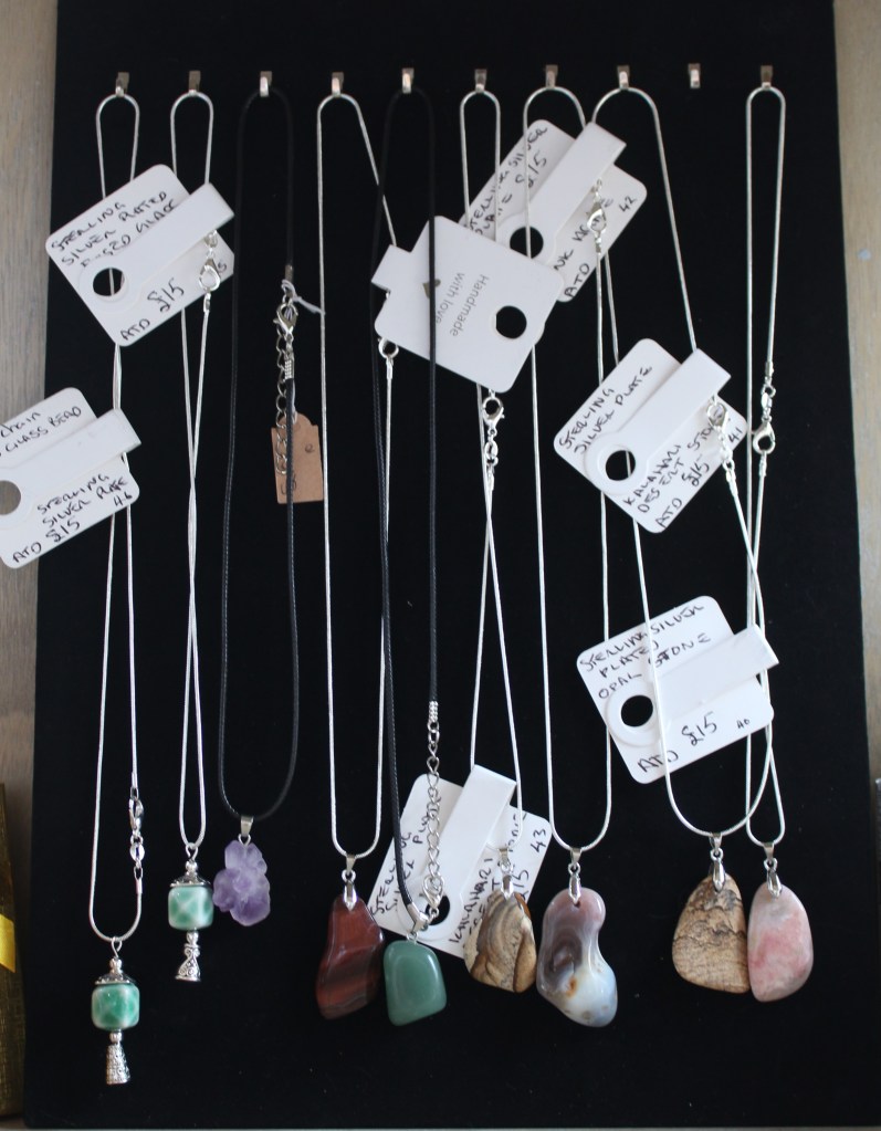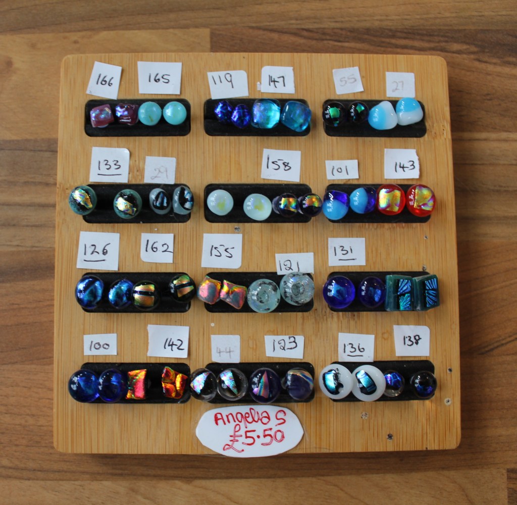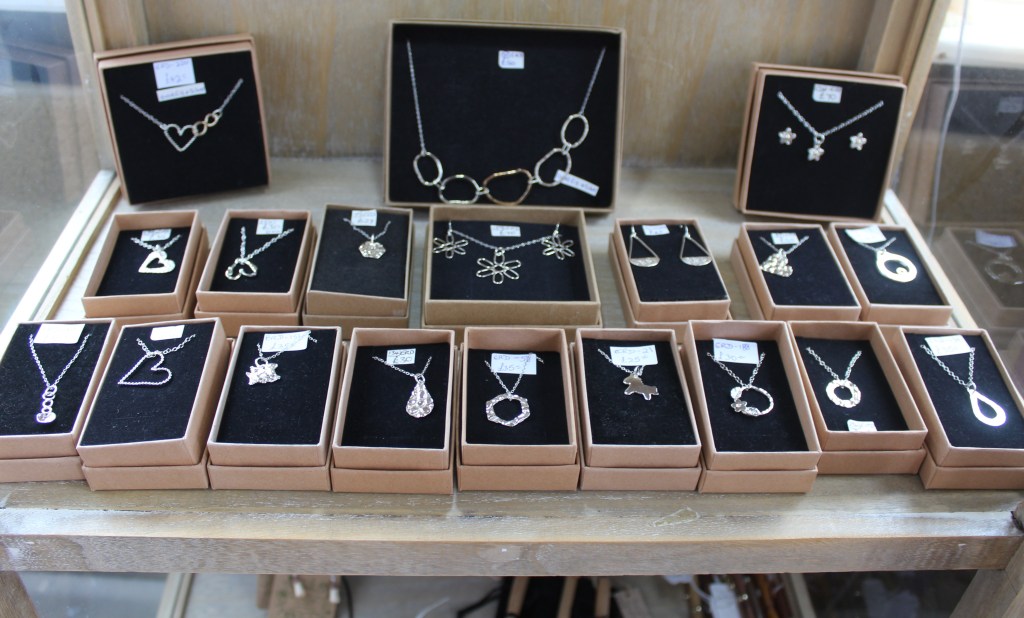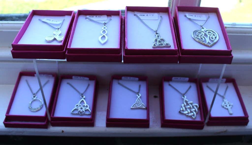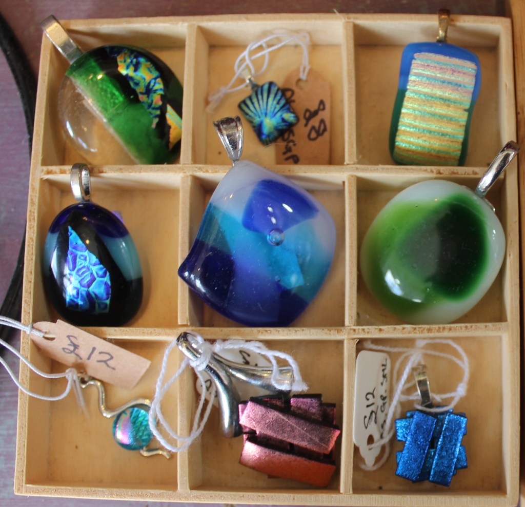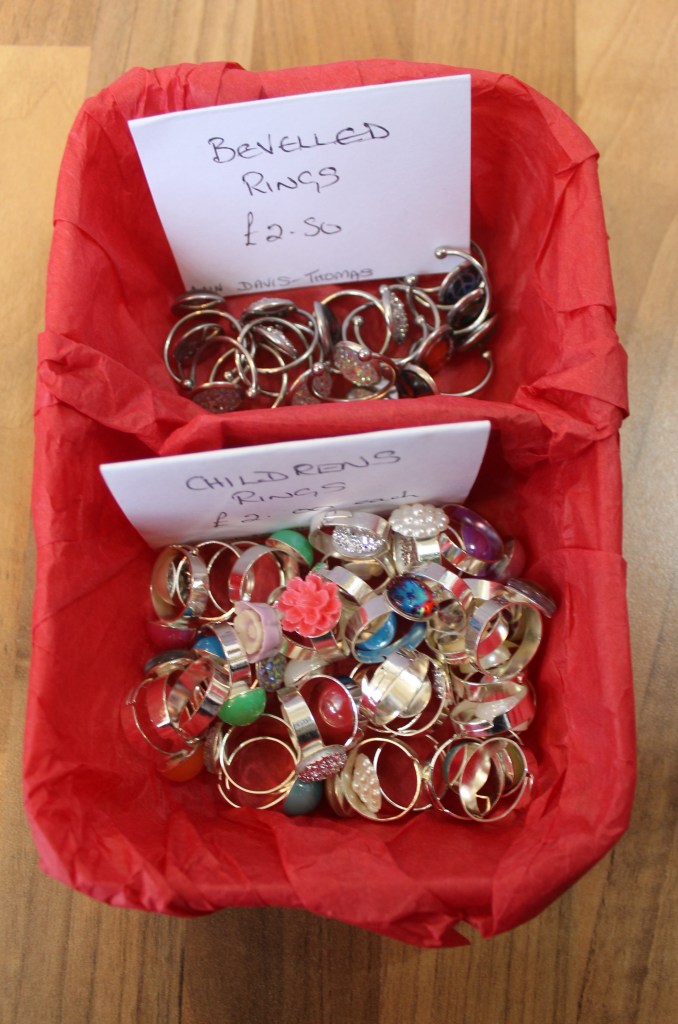 Silver plated charm bracelets – £10Necklaces on 14″ and 16″ chains – £5Children’s Rings £2 – Bevelled Rings £2.50£3£20 eachBy Anne Thomas-DavisRings in various sizes – £30 eachNiall Campbell£12Richard£15By Gareth of Celtic SerenEllie Rose Designs – Sterling Silver and Copper Jewellery (on stainless steel chains)Stud Earrings – £5.50Drop Earrings – £8Glass Jewellery by Angela Singleton