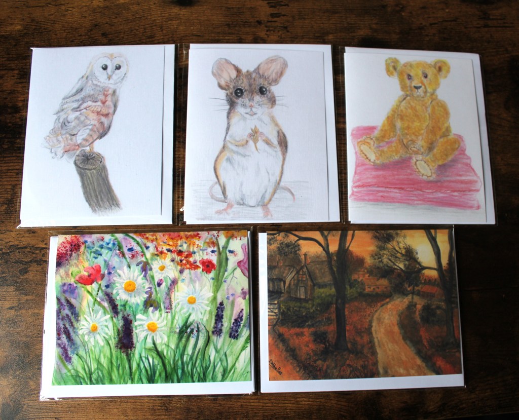 £4 each or 3 or £10Glass Cards by Rhian GoodhandWelsh Girl Postcards – £1.50Printed from Original Artwork by Rachel of Blue Tabby Cat£5£5£5A large selection of handmade cards by Beryl Rees£2.75 each 0Notelets – 2 in a pack for £2Hand painted – from £3.50 eachCards by Julia HarrisOriginal hand drawn cards – £5 or 2 for £8Original watercolours 5 x 7″ – £5 or 2 for £8Prints from original artwork – £2.25 or 5 for £10Postcards of local scenes from original artwork – £1 eachOriginal Watercolour Postcards – £3.50 eachCards by Debbie Eve