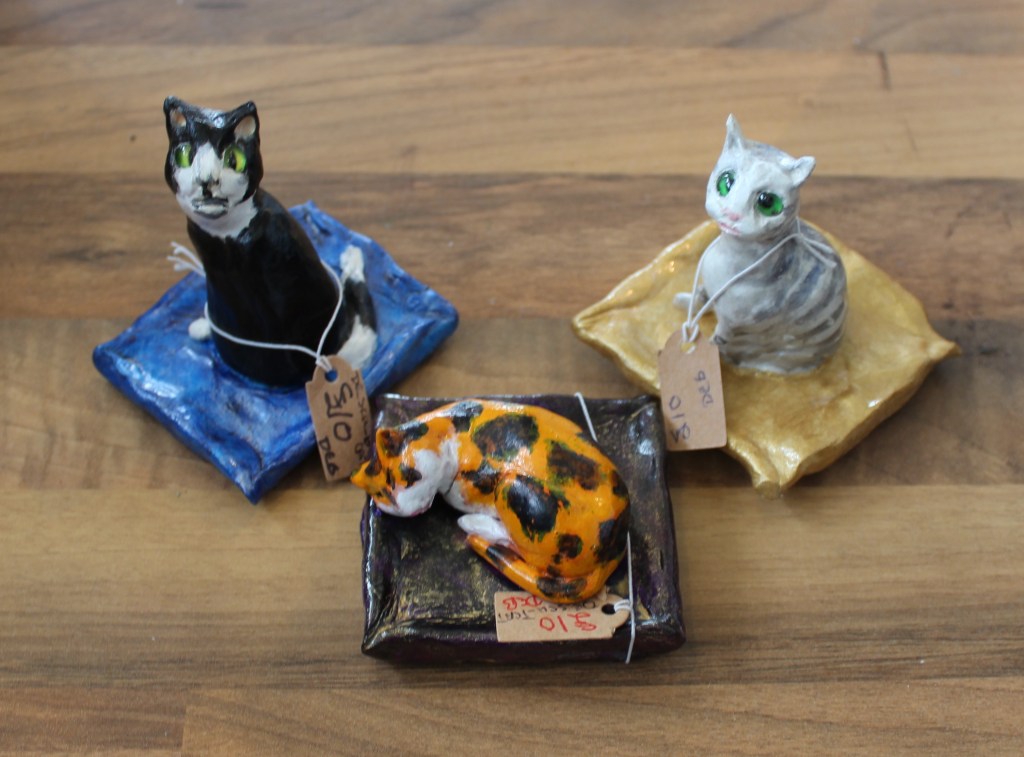3D CRAFTS – BOOK MARKS – BOOKS (listed separately – see top of page) – CERAMICS – CANDLES – CARDS – CHRISTMAS -DOG SOAPS AND CONDITIONERS – EMBROIDERY, NEEDLEWORK, SILK AND FELT – GARDEN – GLASS CREATIONS – HONEY AND BEESWAX – JAMS, MARAMALADES & CHUTNEYS – JEWELLERY – MISC – MOSAICS – NOTEBOOKS – ORIGINAL ARTWORK – PRINTS – RESIN – SOAPS and BATH – SOUVENIR FRIDGE MAGNETS AND KEYRINGS – WAX MELTS – WICKERWORK – WIREWORK – WOOD :